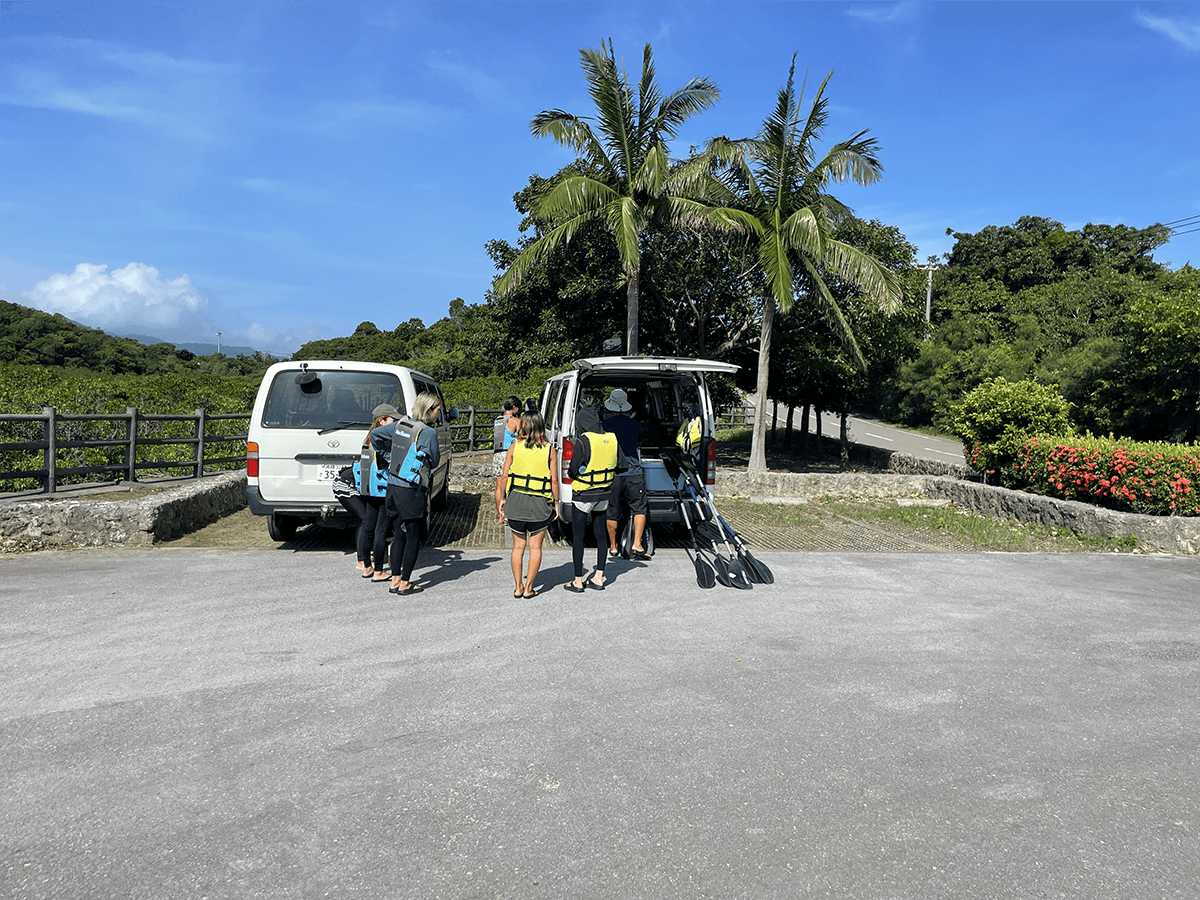 パドル、ライフジャケットの直接触れるものはアルコール消毒を行っております、お客様には送迎車内でのマスク着用をお願いしております。
